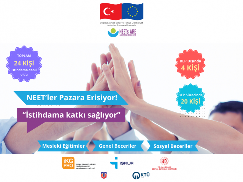 T.C. Çalışma ve Sosyal Güvenlik Bakanlığı Dış İlişkiler ve Avrupa Birliği Genel Müdürlüğü “Ne Eğitimde Ne İstihdamda Olan Gençler için İşgücü Piyasasını Destek Programı (NEET PRO)” Hibe Programı kapsamında Trabzon Ticaret Borsası koordinatörlüğünde, Karadeniz Teknik Üniversitesi işbirliği ile yürütülmekte olan TREESP1.2.NEETPRO/P.03/269 referans numaralı “NEETs are Accessing to Market – NEET’ler Pazara Erişiyor” projesinde Bireysel Eylem Planı Süreci devam ediyor.