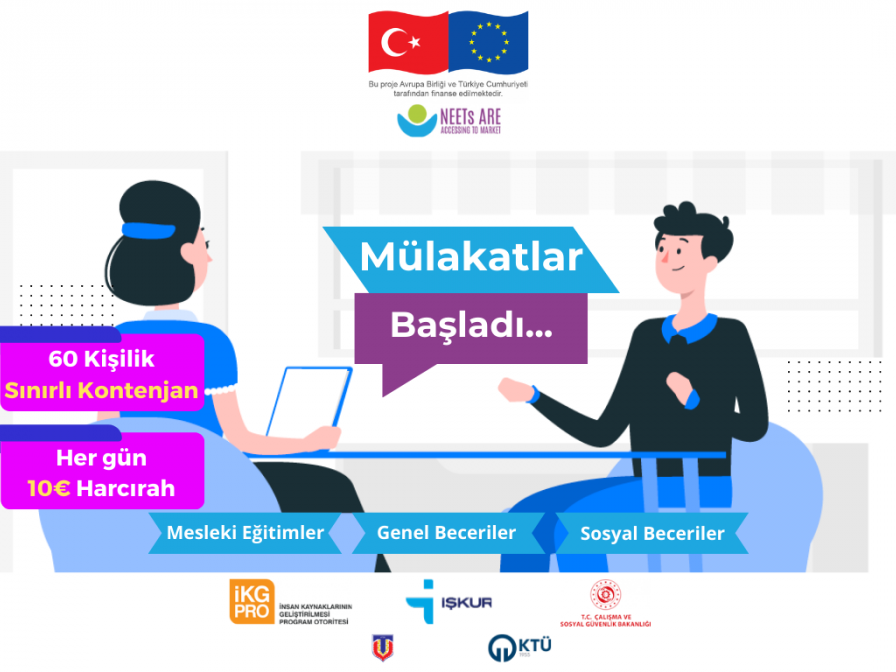Trabzon Ticaret Borsası koordinatörlüğünde ve Karadeniz Teknik Üniversitesi ortaklığında yürütülen NEETs are Accessing to Market (Ne Eğitimde Ne İstihdamda Olan Gençler Pazara Erişiyor) projesi kapsamında kursiyer mülakatlarımız başladı.